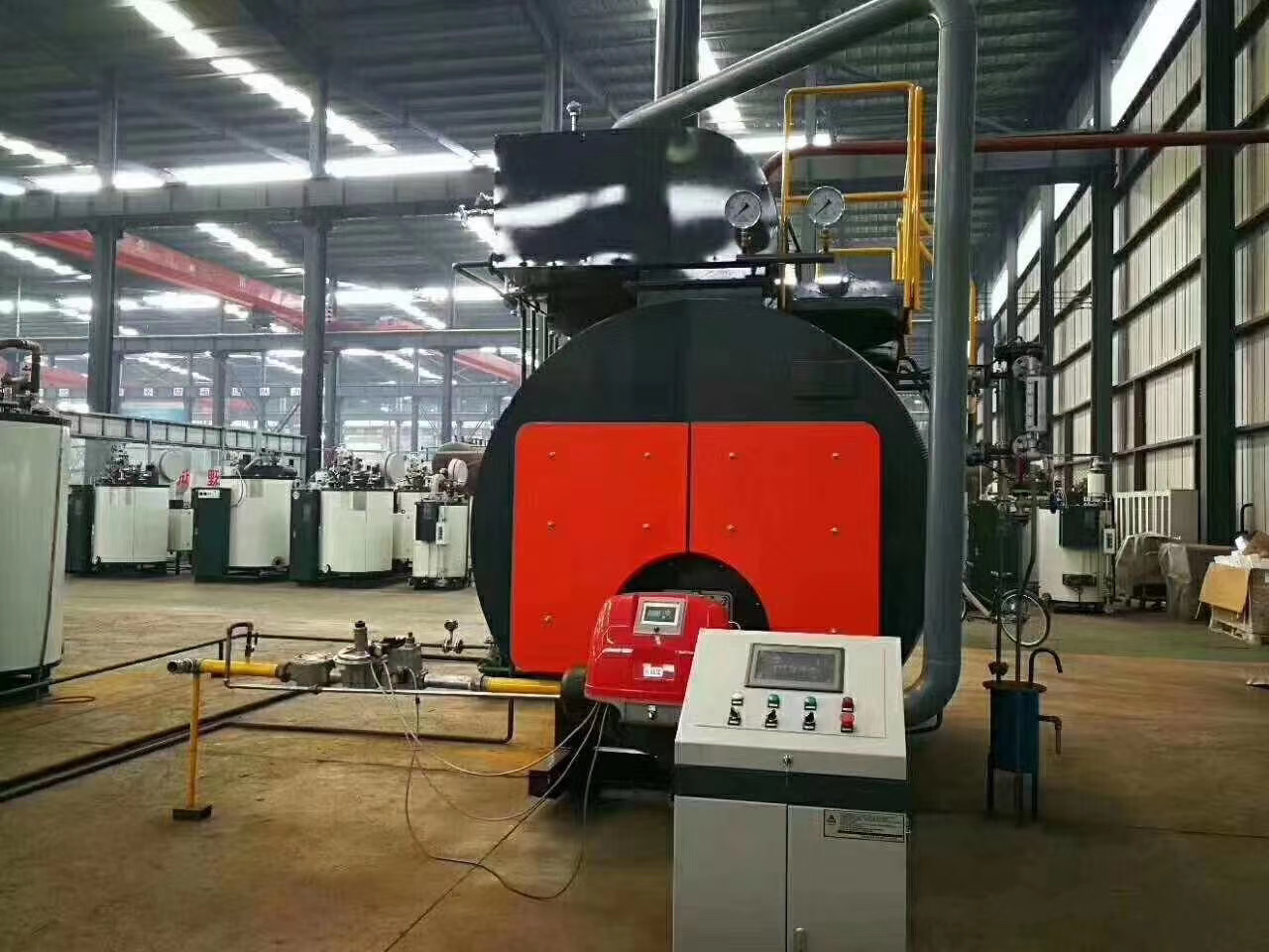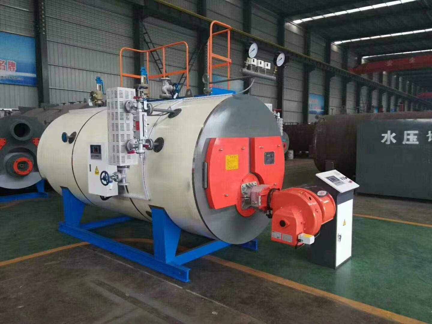 太康集團與德國技術合(hé)作開發的WNS係列燃油燃氣鍋(guō)爐技術指標(biāo)達到世界先進(jìn)水平,處於國內鍋爐行業領先水平。該燃油燃氣鍋爐均(jun1)采用機電一體的結構,外觀大方、結構緊湊、空間占用(yòng)少(shǎo),運輸方便(biàn),基建投資少,既遵循了節能環保理念(niàn),又滿足了工程項目所需的熱能;在生產使用(yòng)上,該種類鍋(guō)爐真(zhēn)正的(de)做到了燃燒清潔、排放無汙染、操作便捷、出力充足。 近年來(lái),一方麵,石油、天燃氣的開發速度大大提高(gāo),國家取消了大中型城(chéng)市燃用油品和天(tiān)燃氣的限製; 另一方麵隨著全球環保意識增強,我國國民經濟迅速發展(zhǎn),人民生活(huó)水平不斷(duàn)提高,促使我國對燃料政策進行了(le)調整。為了改善大中型城市的環境汙染情況和大氣質量問題,政府開始鼓勵公共企事業(yè)單(dān)位燃用油品(pǐn)和天然氣,這大大加(jiā)快了燃油燃氣(qì)鍋爐的發展。 WNS 係列燃油燃(rán)氣鍋爐,即鍋殼式臥式內燃燃油燃氣鍋爐,作為燃油燃(rán)氣鍋爐的一種,又以其結構緊湊、體積小、自動化程度高、安裝方便、運行安全可靠(kào)、燃用的油(yóu)氣燃料燃燒充分,所產生的有害(hài)氣體少等優點為(wéi)大多數燃油燃氣鍋爐所采用,受(shòu)到廣泛的好評(píng)。 WNS型燃油燃氣鍋爐實現了燃燒充分、排(pái)放無汙染、操作便捷、安裝方便等優點(diǎn);該類型鍋爐熱效(xiào)率高、出力大、負荷適應性強、自動化程度高、操作方便、運行安全可 靠,是一種理想的(de)高效、低耗(hào)、低汙染綠色環保產品。 1、WNS係列燃油燃氣鍋爐采(cǎi)用國際流行(háng)三回程結構,燃燒室大容積設計,使燃燒更加充分。 2、采用先進的波形爐膽結構,既增加了傳熱麵積,也滿足了爐膽受熱後的自由膨脹。 3、煙(yān)管采用(yòng)螺紋結(jié)構,強化了傳熱效果。 4、鍋爐采用濕背式結構,全扳邊對接焊縫,可靠性高,維修費用低(dī)。 5、後視裝置的(de)設計,便於觀察燃燒狀況。 6、設計超溫、超壓、缺水、檢漏、熄火等(děng)多(duō)種保(bǎo)護功能,鍋爐運行安全(quán)可(kě)靠。 7、鍋爐(lú)包裝有彩紋板,鏡麵不鏽鋼或者亞光不(bú)鏽鋼三種形式,外表(biǎo)美觀大方(fāng)。 8、配置自控(kòng)性能良好的進(jìn)口燃燒器,實現全自動(dòng)化操作。 9、WNS係列燃油燃氣鍋爐鍋爐熱效(xiào)率(lǜ)高,出力穩定,負荷適應性強。WNS型燃油燃氣鍋爐性能優勢: