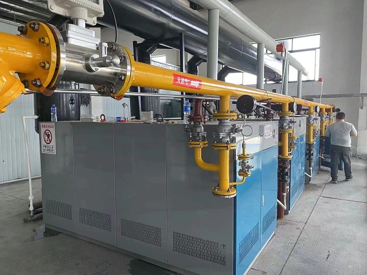 燃(油)氣直流(liú)蒸汽發生器產品介(jiè)紹: 直流鍋爐也叫蒸汽發生器,是指靠給水泵壓力,使(shǐ)給水順序通過節能器、蒸發受熱麵、再加熱受熱麵,將水全部變為過熱水蒸汽的鍋爐(lú)。直流鍋爐在20世紀20年代初即已發明,30年代開始應用(yòng)。具有不用汽包;壓(yā)力參數範圍(wéi)寬,既可用於亞臨界壓力等(děng)優點。 工作(zuò)壓力::很大1.6Mpa 額定(dìng)蒸發量(liàng)::300kg-2000kg 氮排放量::≤30mg 蒸汽溫度::高204℃ 應用領域:廣泛適用於醫院,學校(xiào),紡織廠,服裝廠(chǎng),服裝超市,幹洗店。飯店(diàn)。酒店,食品廠,食堂,酒廠,洗浴中(zhōng)心,建材廠,蒸房等場(chǎng)所 燃(油)氣直流蒸汽發生器優點 01全自動智能(néng)控製係統 自主研發智能觸屏控(kòng)製係(xì)統,精準供水、供氣模式,提高設備的智能化運用水平,設(shè)備(bèi)完全可(kě)以做(zuò)到免人工值守、全自動智能化運行。節省企業人工成本和維護(hù)成本。 02蒸汽直流技術運用 直(zhí)流蒸(zhēng)發(fā)技術使水流經熱交換器後瞬間汽化變(biàn)成高溫高(gāo)壓的高品質蒸(zhēng)汽,蒸(zhēng)汽產生的時間僅(jǐn)需1分(fèn)鍾,蒸汽發生速度快,大大降低熱量的損耗節省能源。 03變頻(pín)控製蒸汽技術 可使蒸汽發(fā)生器設備能夠(gòu)按照(zhào)用汽(qì)量的大小進行自動調節,使蒸汽發生器設備真正做到按需分配、精準到位(wèi),從而達到節能的目的 04低氮燃燒技術 遠大直(zhí)流蒸汽發生器是(shì)采用常態低(dī)溫燃燒技術,該技(jì)術大大減低氮氧化物的排放,NOx的(de)排放低於30毫克。 05非壓力容器設計,無需使用辦證 遠大直流蒸汽發(fā)生器是沒有容(róng)水內膽,整個設備內的熱交(jiāo)換管路的容水量約10升,遠遠低於30升標準,無爆炸風險沒有(yǒu)隱患 06模塊化設計綜合節能率(lǜ)高達30%以上 直流燃油氣/生物質蒸(zhēng)汽發生器采用模塊化設計,定型蒸(zhēng)發(fā)量設計為0.3 噸、0.5噸、0.7噸、1.0噸(dūn)、1.5噸、2.0可采用模塊(kuài)式配置,設計(jì)緊湊占地麵(miàn)積小,近距離分布式安裝可大大(dà)節省蒸汽管道傳輸的熱量損失和管道投資(zī)維護成本。綜合節能率高達30%以上(shàng)。 用戶部分案例:
